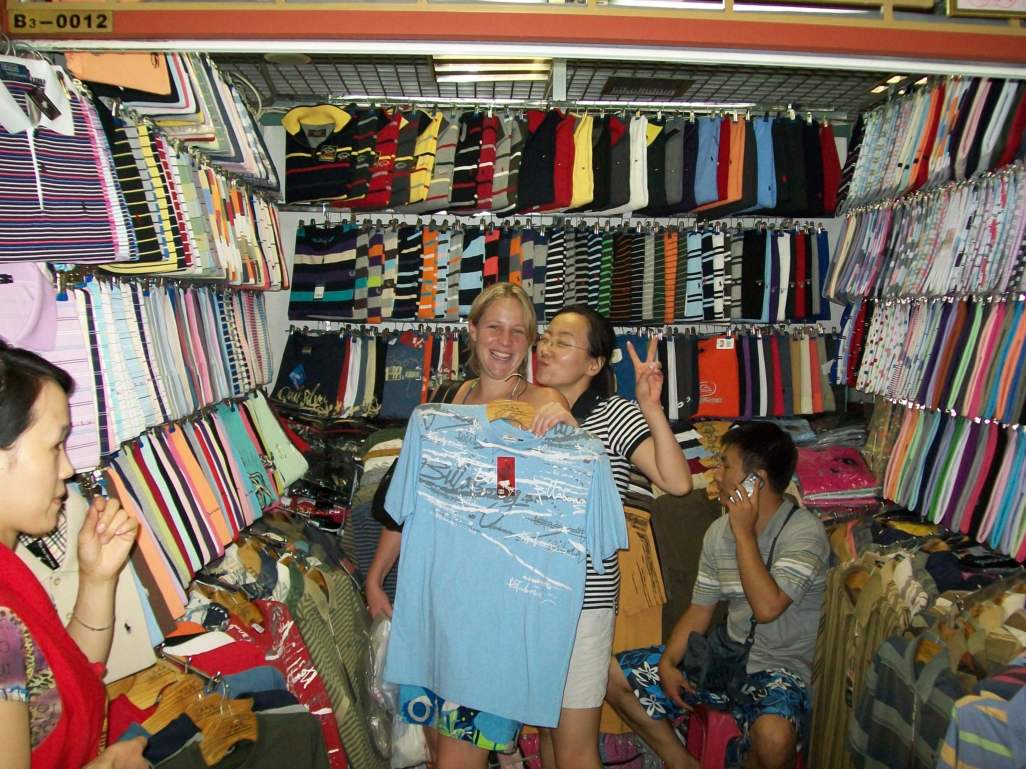 We met back up with the girls who were enjoying the most expensive cup of coffee in the universe and decided to head back into Beijing, giving the summer palace a miss due to all the crowds. Instead we made for the silk markets where you could purchase imitation brand name clothes. This place was a worry as it is frequented by foreigners so most of the stall holders can speak a small amount of a wide variety of foreign languages. We were set upon by the stallholders as soon as we arrived, handsome boy, pretty girl would you like to buy (insert whatever they were selling). This place was like the other shopping centers in that each level contained a different type of product one level was shirts, shorts and other clothing, another level contained wallets and handbags and yet another with leather goods.