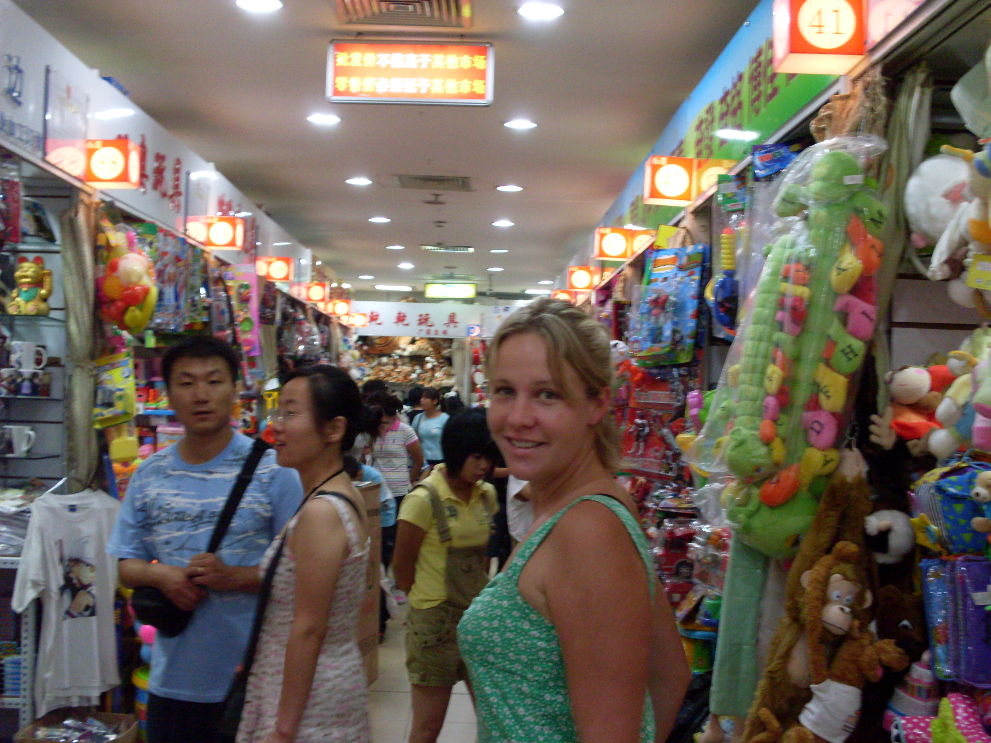 We headed down to another market to collect some toys for the kids stopping at a Pizza joint on the way, western style pizza joint in Beijing equals expensive not particularly tasty food, perhaps there is an opportunity there. We managed to get some cool things for the kids including a couple of kites with flashing LEDs to hang from the strings similar to the ones we had seen being flown at the Olympic park. We also picked up a rip stick style of thing except this one doesn’t have a joining pole in the middle, the kind of thing people hurt themselves with after getting drunk.