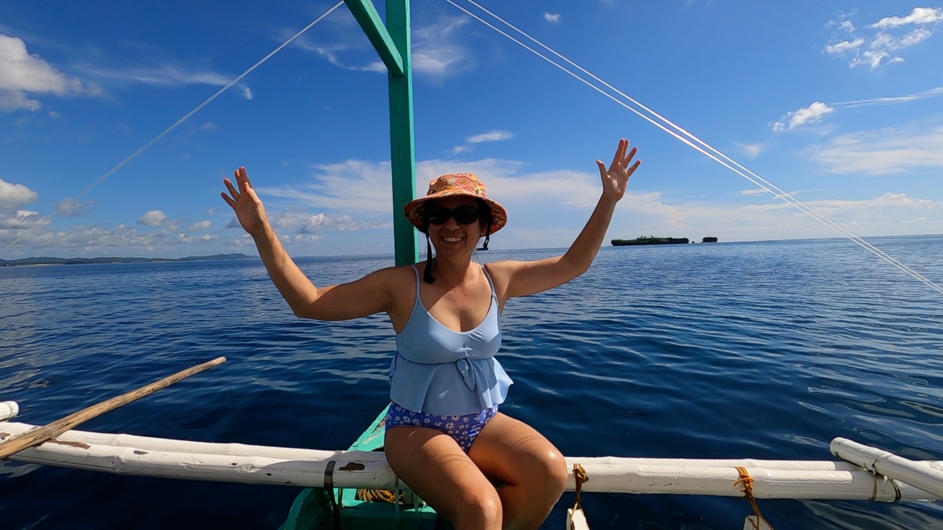Flo had organised for a boat to take us out to surf near the islands off La Luna, and we were to meet up with them at 7am. We had organised for the surf shop at Cloud 9 to deliver a couple of boards to Ocean 101 at 6:30am. Perfectly organised, with some time to spare just in case, right? As if that was ever going to happen, this is the Philippines. In classic Philippines island style, at 6:45 as we were on the way over to Flo and Richard’s place, the lady from the surf shop met us at the front reception and asked us to come down to the surf shop to select our boards. This did not leave us with a lot of time to go to meet up with the boat. Byron, Christine and I made our way down to the Cloud 9 surf shop, we selected a couple of reasonable 9’2” boards, I carried them down to Ocean 101 while Byron and Christine brought the bikes around. We met up with Flo and Richard who then took us out to meet the boat.