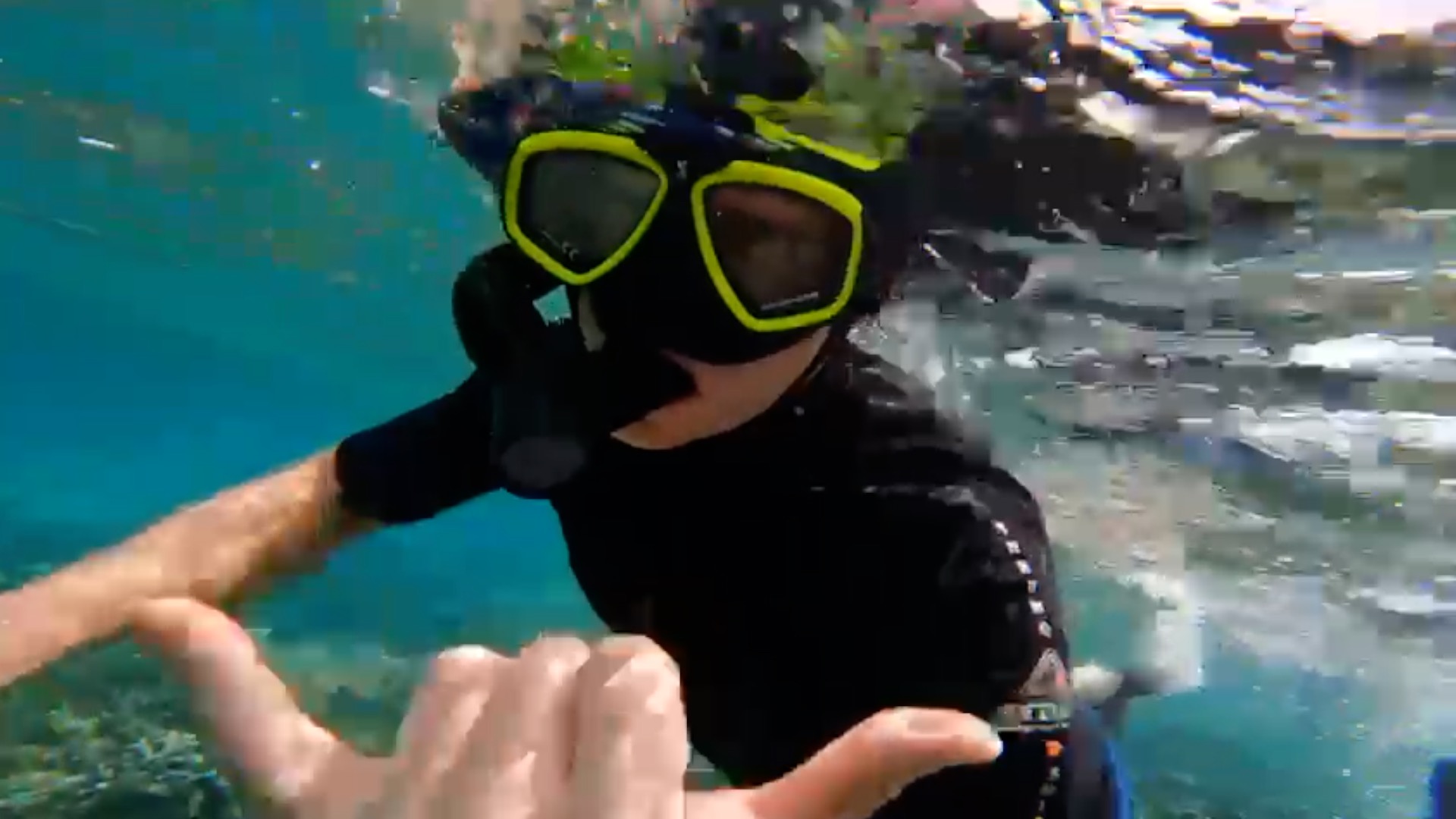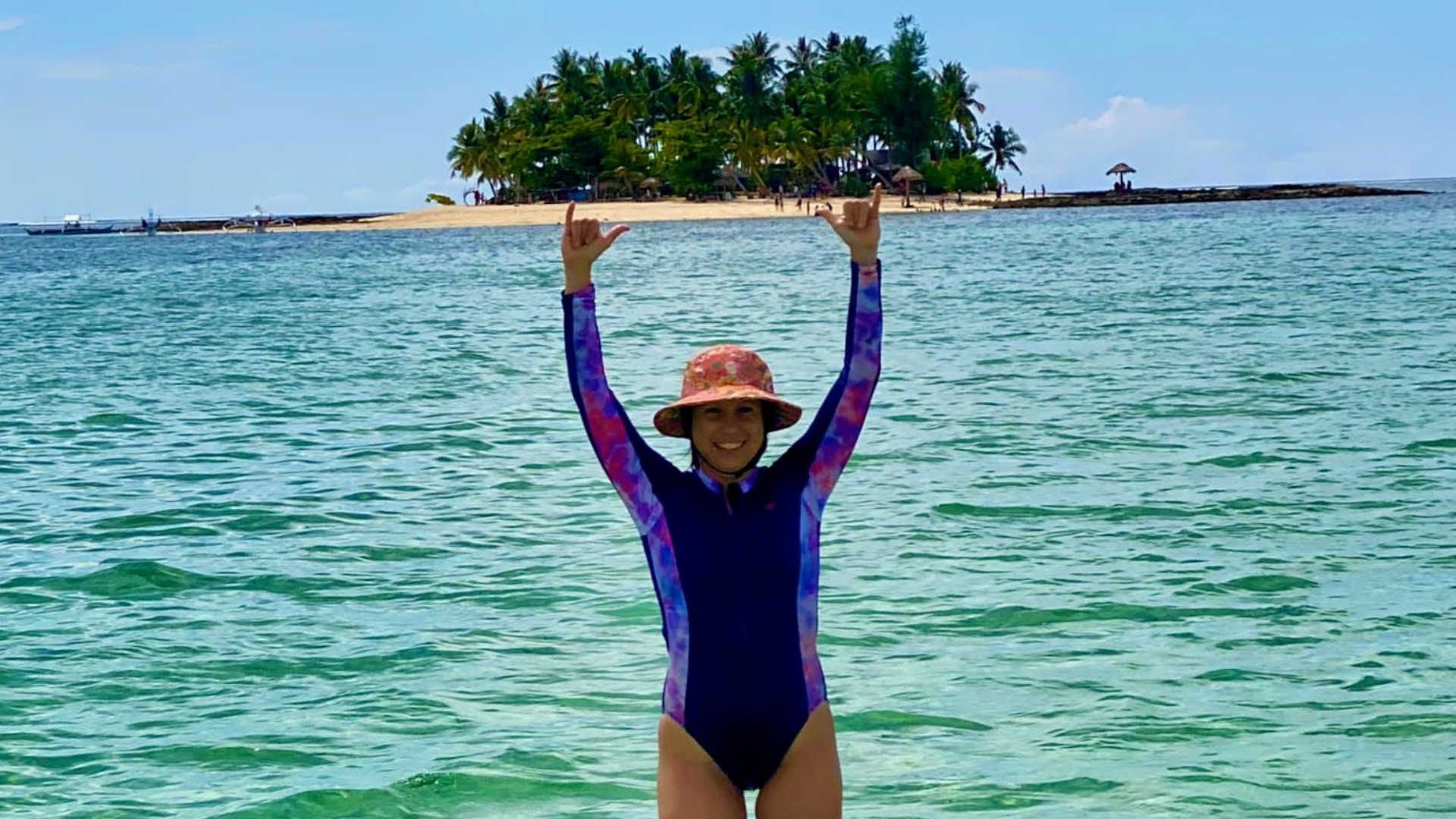 Once we had circumnavigated Guyam Island, listened to some music and danced salsa, we re-boarded the boat and made our way over to Secret Island. Secret Island is actually a sandbar, it may have been exposed at low tide, but it was under water at the time we went there. We disembarked and had a bit of a swim. Scotty took a photograph of Christine standing on my shoulders. He had her hold up her hands so that it would look like she was carrying Guyam Island, from where we had just left. Once we were done with our swim we re-boarded the boat and made our way across to a reef so that we could do some snorkelling. This was the first time in a long time that I had been snorkelling. Under the surface it was a labyrinth of colour and movement with various types of corrals, fish, plant life and other sea creatures, I even saw a massive sea urchin hiding in a small cave. Some parts of the reef had been destroyed in Typhoon Odette, but the majority of it was still thriving. Once we were all snorkelled out, we clambered back aboard and made our way over to naked island.
