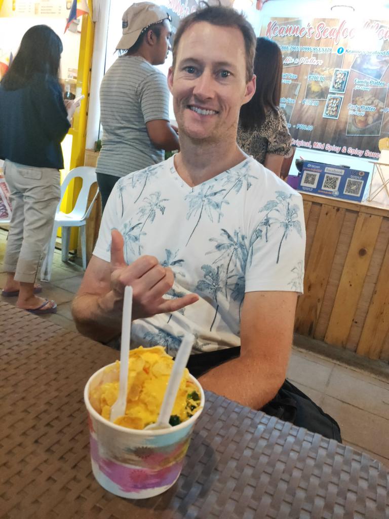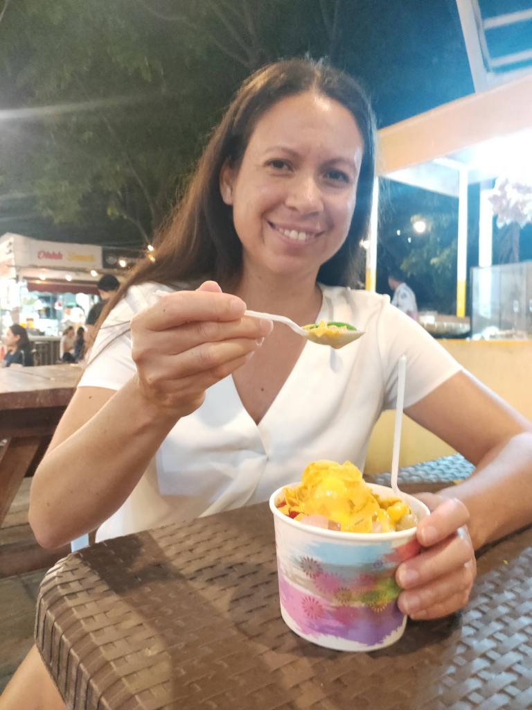 In the evening we wandered up to the supermarket up the road to collect some supplies to make tacos for dinner. After dinner we wandered over to the food markets to collect a lychee and coconut shake. We drank our shake while we wandered over to the other food market to try chef Blake’s halo halo.