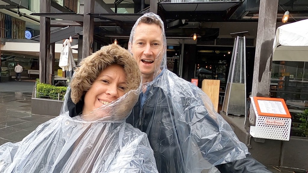 Once again we didn’t get up particularly early and when we did get up we sat and watched a filipino drama on the television that Christine had finally managed to make work. The weather had turned and it was now rainy and cold outside. We strapped on our cold weather gear, checked out of the hotel, left our luggage in the cloak room, picked up some hot chocolates to go and headed down to take a look at the Southbank precinct. We wandered around the Southbank mall and picked up a couple of rain coats.
