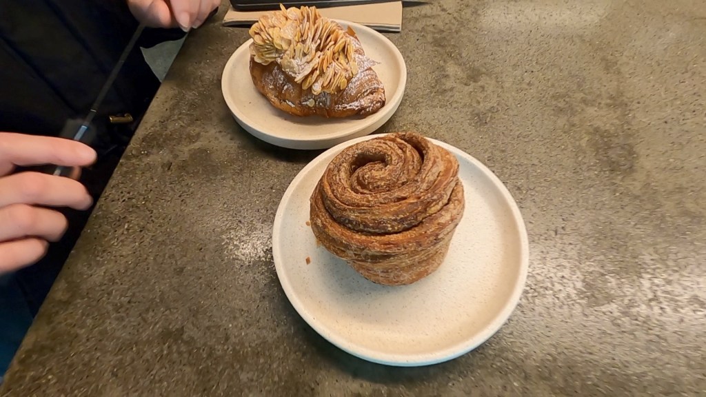 We made our way to Lune Croissants, a place that Christine had wanted to go to, and joined the line of people waiting to get in. It was around this point that I came to the conclusion that Melbournians love queuing up, perhaps this is why they haven’t connected the airport to the city with a train. The food was pretty good, we had a couple of their pastries and a couple of their hot chocolates.