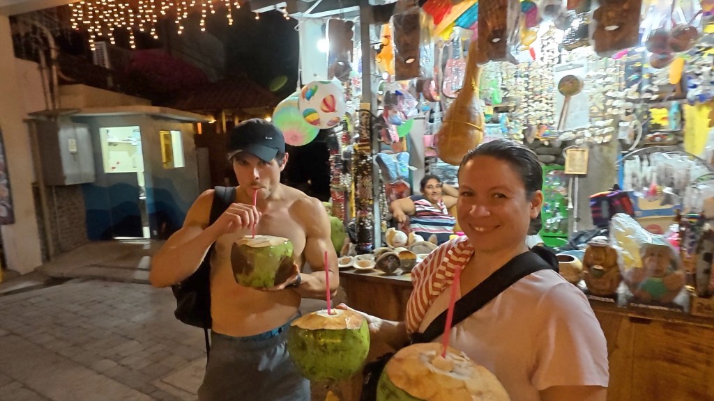 The Gym was awesome and much needed, it was in a large shed and was fully equiped. We did a full body workout and then stopped for some coconuts on the way home. We had the vendor cut them in half so that we could scoop out the flesh. Interestingly these coconuts didn’t have a lot of flesh indicating that they were a bit young, this is probably why they were not as sweet as the ones that we had been living on in the Philippines.