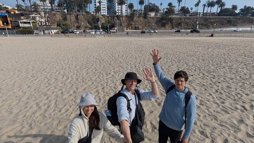 Due to the time difference I woke up at around 4am and struggled to get back to sleep. I eventually got up and did some yoga. This was awesome for my knee and really freed it up. We got organised and checked out and ubered our way to Venice Beach. We dropped our bags at a bag drop place and went for breakfast at an Australian themed cafe. We had scrambled eggs with toast, avocado and salad. We made our way down to the Santa Monica Peer and the beach beside it. Our plan was to take a drone shot from the beach, alas this was not to be. Someone had flown a drone into one of the helicopters during the recent fires and the government had put in place restrictions to stop drones from being operated in this area.